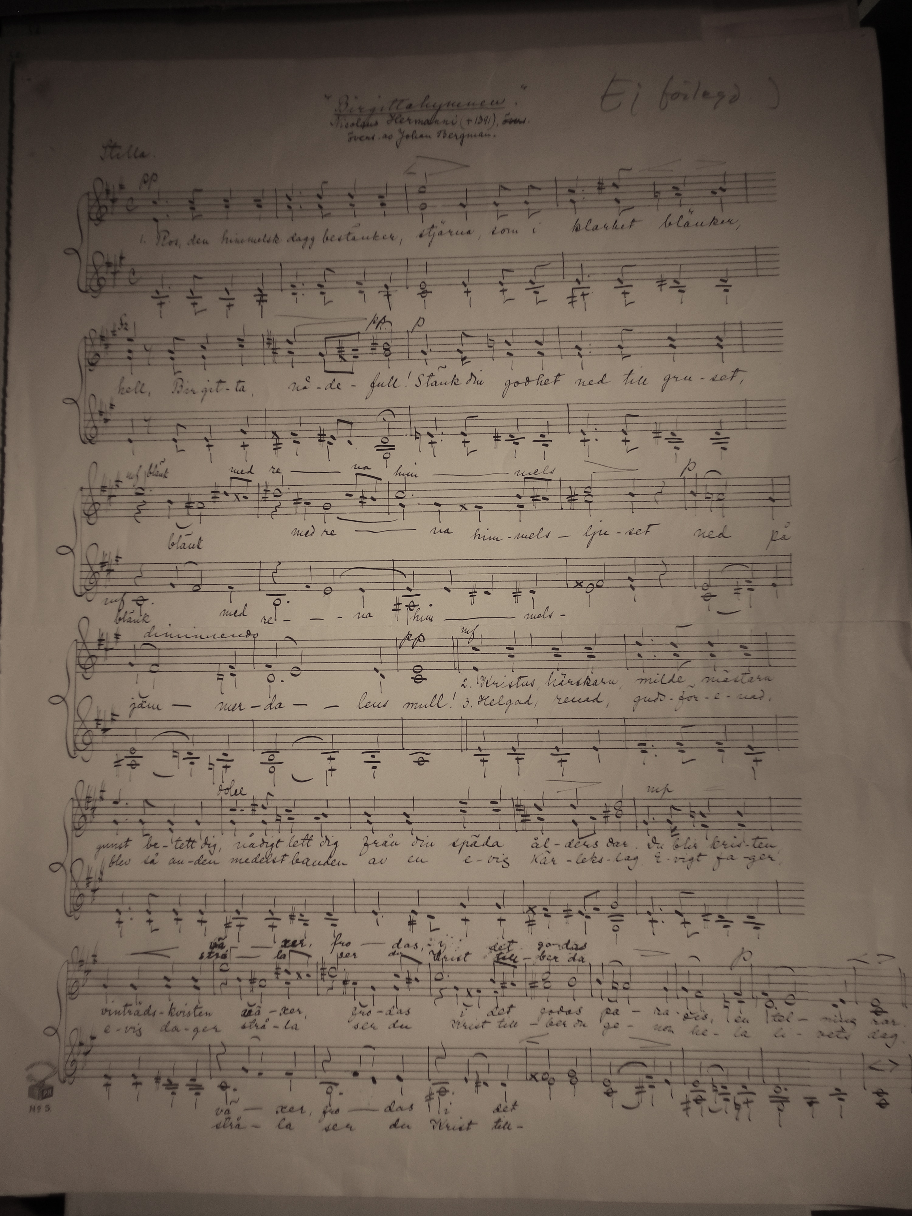 - Birgittahymnen - Partitur (1 sida, jpg - 2,7 MB | Nedladdad 3562 gånger)