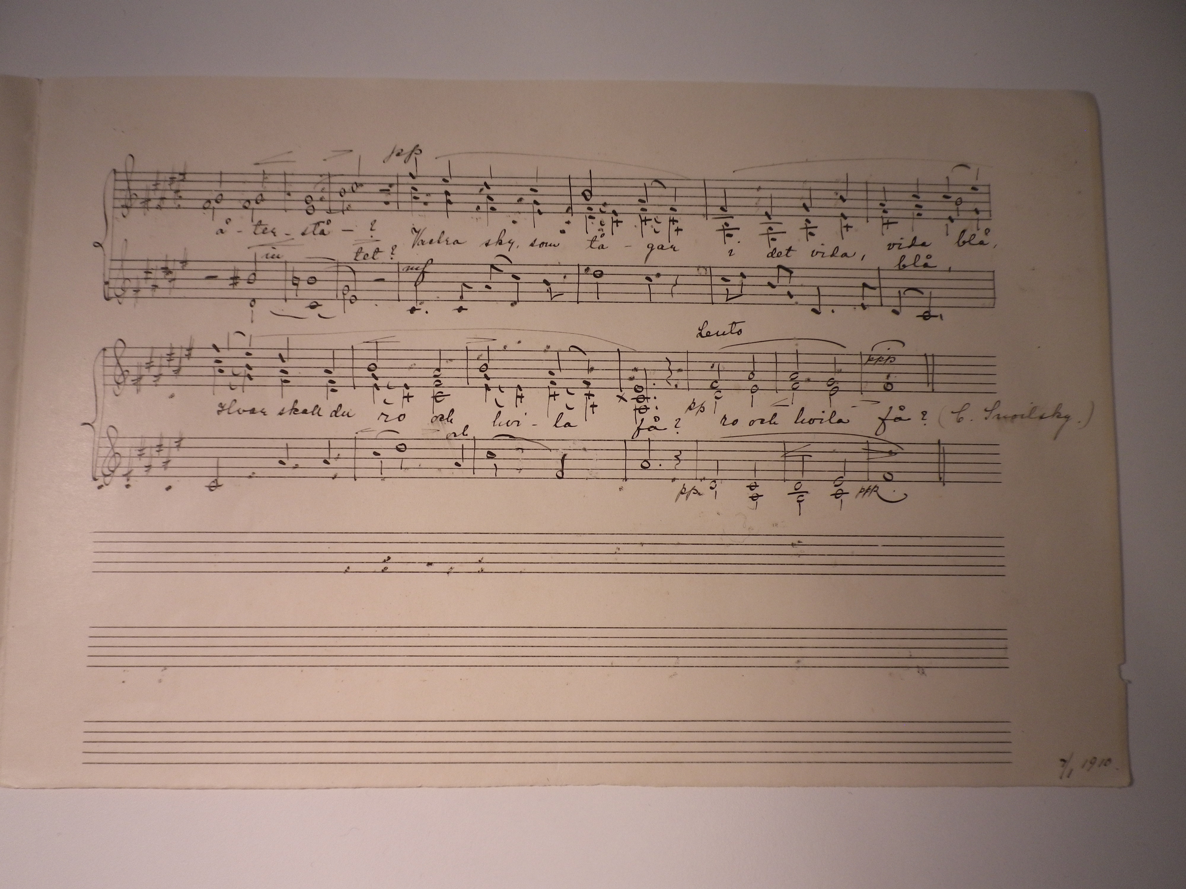 - Katalogsignum/kommentar till autografen: Alice Tegnérs samling, Tilläggsacc. 2008. Partitur daterat 7 januari 1910. Skannat av MTB